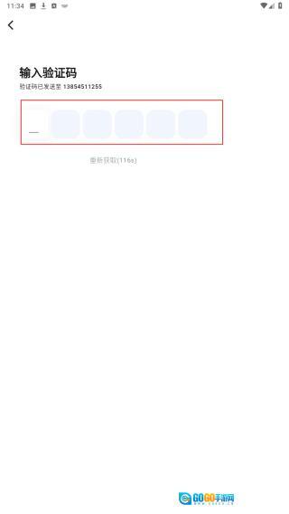 3、在验证码输入框填入收到的6位数字。