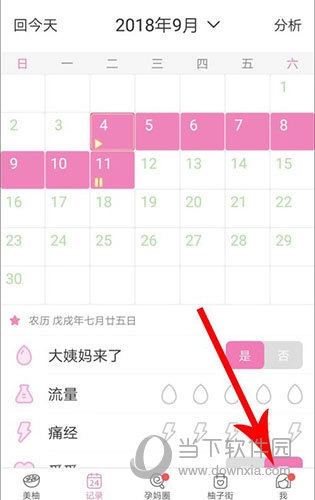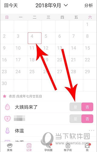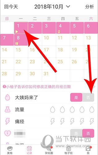 5、打开显示真实末次月经日期的日历表后,点选末次月经开始的日期,选好后点击“大姨妈来了”右边的“是”按钮。
