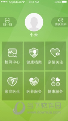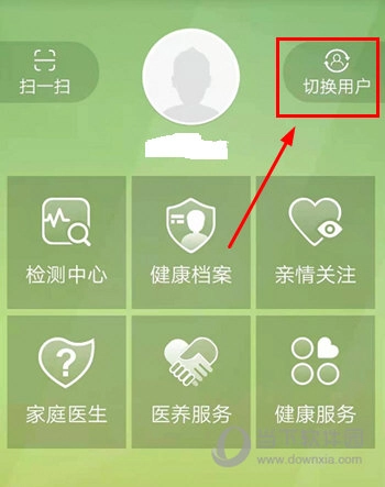 1、打开小云健康,在软件首页的功能界面中,找到并点击“切换用户”这一功能选项。