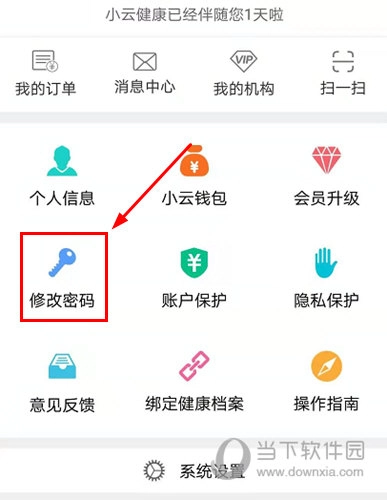 1、点击个人头像进入个人页面,接着就能看到“修改密码”的功能选项,点击该选项进入修改界面。