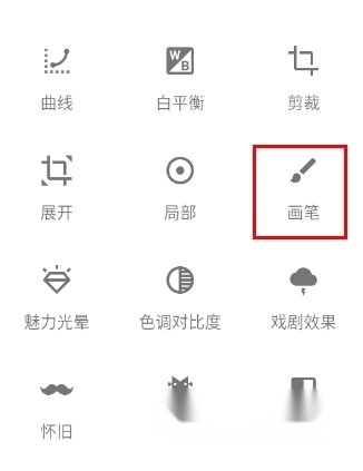 在Snapseed里要是想调整图片的曝光度,我们得先把图片导入到应用当中,接着在工具栏里选择【画笔】工具。