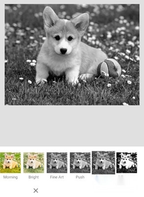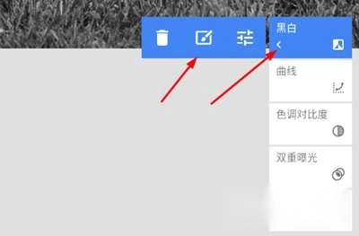 在其中选择【黑白】选项,接着点击第二个带有笔刷图案的图标,即可进入蒙版界面。
