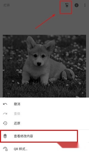 然后我们点击顶部红圈标注的按钮,在弹出的菜单栏里选择“查看修改内容”。