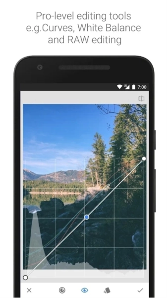 RAW显影方面,Snapseed能够打开并微调RAW DNG文件;可以对文件进行无损保存,也能导出为JPG格式。