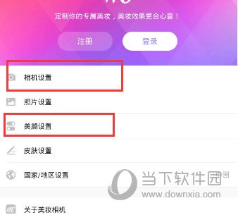 2、然后进入点击【相机设置】和【美颜设置】;