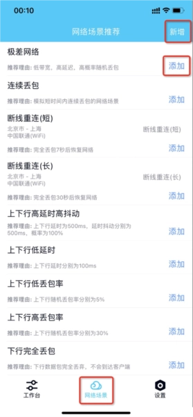 首先添加编辑弱网模板,提供不同的网络场景,并可根据测试要求对网络参数进行调整,弱网模板支持新增、删除、修改、查询操作。