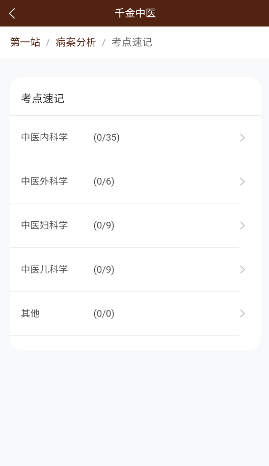3、进入“考点速记”栏目,就能开始系统学习中医基础理论与临床要点知识了。