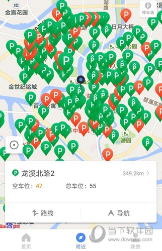 1、打开湖州停车应用,在附近地图功能界面中能查看周边的停车场所,点击对应的P功能按钮操作即可。