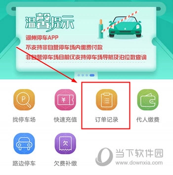 1、在湖州停车的“首页”功能界面中,能看到“订单记录”这一功能选项,点击该选项就能进入相应页面。