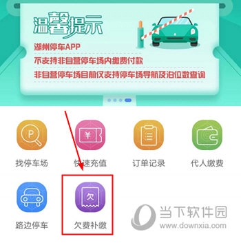 1、同样地,在湖州停车的“首页”里,选择并点击“欠费补缴”这一功能选项。