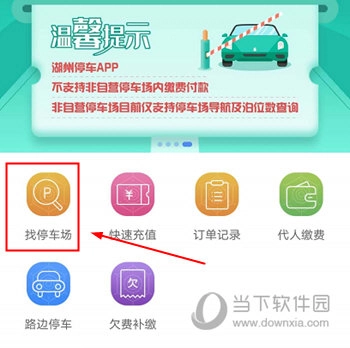 1、在软件的首页里能看到“找停车场”这个功能选项,点击它就能进入。