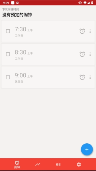 2、首先在闹钟的首页你可以看到预定的闹钟。
