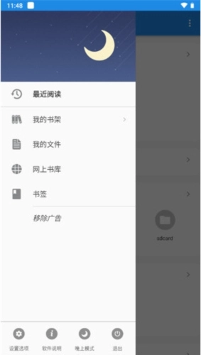 1、在静读天下的书架主界面,点击右上角的竖排三点图标(可参考之前的两张图示),接着在弹出的菜单里选择“导入书籍”选项(具体见下图)。