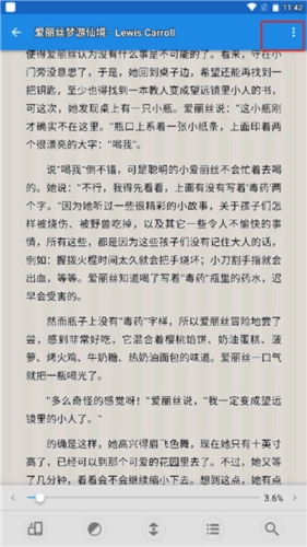 2、进入阅读页面后,点击屏幕唤出功能界面,接着点击左上角的三点图标;