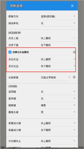 4、在屏幕触碰时间设置中勾选左右模式,即可将翻页方式设定为左右翻页。