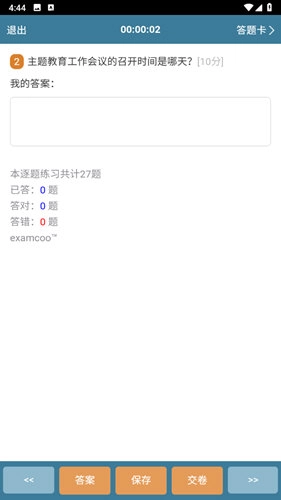 考试酷手机版是考试酷(examcoo)的手机端应用。这是一款专为各类学校和培训机构提供考试系统应用,包括自测练习、组织统一考试、开展知识竞赛、布置课外作业或假期作业、智能组卷、答卷评阅与成绩管理等众多功能,适用于政府机构、企事业单位内部的入职考试、员工考核、内部培训考试等场景。考试酷还会自动生成详细的成绩报告,包括总分、每个问题的得分和正确率、排名等信息。用户可以在考试后立即获得成绩,并对自己的表现进行分析和评估。考试酷系统拥有独创的最灵活的试卷录入方式,既有采用独创的“所见即所得”技术的手工录入方式,又能够支持自动快速导入试卷,这些试卷都能支持全自动评分和阅卷的在线考试。我们将致力于为用户提供零安装、零维护、零成本、最专业、全功能的在线考试系统,它一定能成为您不可多得的电子作业和考试助手。