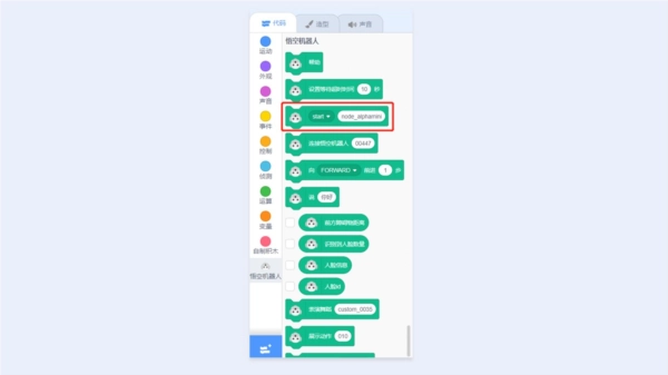 点击积木「start(node_alphamini)」启动扩展节点,稍等一段时间,成功后屏幕右上角会弹出提示语。