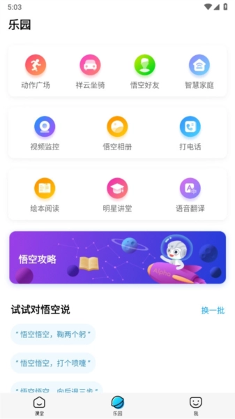 悟空教育版是优必选悟空教育版机器人配套的应用,该机器人提供丰富的教育内容:支持uCode连接、高级动作回读功能、STEAM教育等,同时也涵盖了很多娱乐内容:拍照、视频监控、移动电话等多种功能。使用可以轻松的管理机器人的各种行为。悟空机器人具备人机交互能力。这款机器人动作灵敏,拥有丰富的表情,并具备舞蹈运动、语音交互、智能通话、人脸识别、绘本识别、视频监控、物体识别,以及与编程猫合作的图形编程等功能。悟空教育(VuKongEducation),专注于为3-18岁全球青少儿提供在线教育解决方案。2016年创立至今,已成长为海外少儿在线教育领导品牌,是海外家庭实现精英教育梦想的首选国际教育平台。悟空中文拥有4000+来自全球的一流老师,教研团队由超过10年专业经验的海内外语言教学专家组成,具备自主研发课程的原创能力。