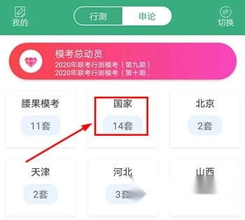 1、启动腰果公考应用,进入模考功能界面,从中选择一场模考并进入。