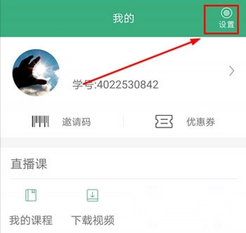 1、打开腰果公考,进入“我的”个人信息设置界面,接着点击右上角的“设置”功能按钮。