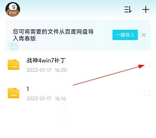1、打开百度网盘青春版进入首页,勾选要的文件。