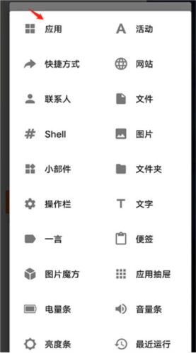 4、内容可添加快捷应用、快捷方式、网址、联系人,以及图片、小部件、音量条、亮度条、基本统计信息、便签等,使用起来更加方便。