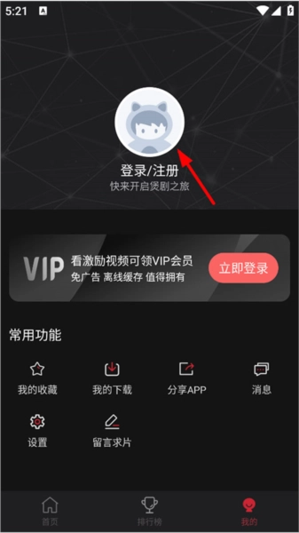 2、打开我的页面,用户点击头像注册/登录;