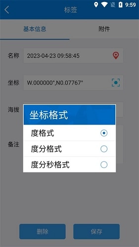 1、添加标签页面,可以添加名称、坐标、备注信息;
