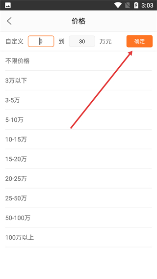 3、在价格设置界面自行设定价格区间后,点击【确定】按钮。