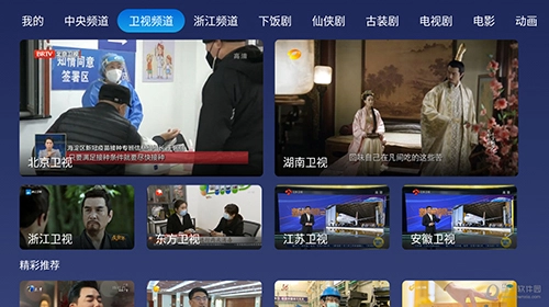 2、小鲸电视tv可以把选好的频道收藏起来,卫视频道也按同样的方法收藏。之后在“我的”页面里,找到“启动播放收藏”和“启动播放历史”这两个选项,把它们设置成“播放”状态,这样下次打开应用时,就会自动播放之前收藏过的央视和卫视频道了。要是想换频道,直接按上下键就行,和传统电视的操作一样,对老人来说会更简单上手。