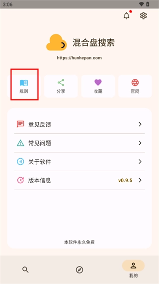 1、在本站安装混合盘后,进入“我的”页面,点击“规则”
