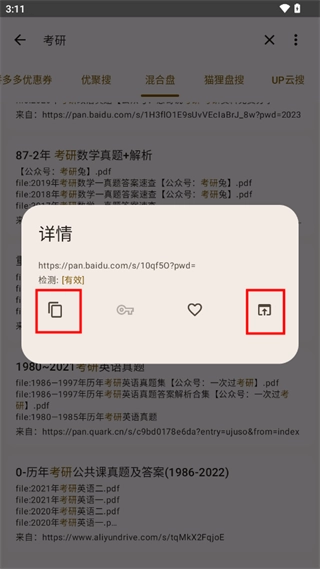 6、点击自己想要的资源,可以选择“复制”或者直接在浏览器中打开资源链接,将链接内的资源直接保存即可