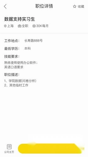 5、支持职位收藏功能,便于用户再次查看自己感兴趣的职位信息。