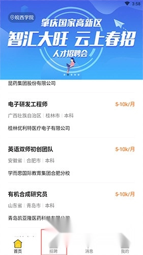 1、打开软件,点击下方的“招聘”选项。