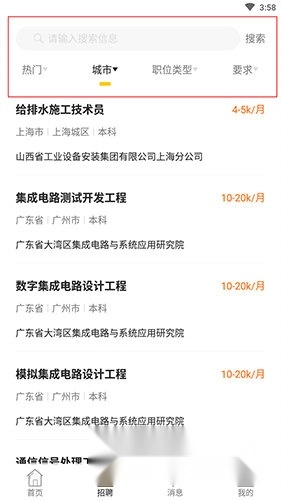 2.进入首页后,先了解主要功能信息,接着查看热门岗位。