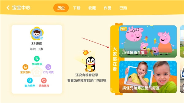 “小企鹅乐园”是腾讯视频出品的,专门为0-12岁孩子及其家长定制设计的儿童内容平台,内容涵盖中英双语动画、儿歌、早教、故事、绘本、动画电影、纪录片,以及配音、涂鸦和知识挑战等互动内容。