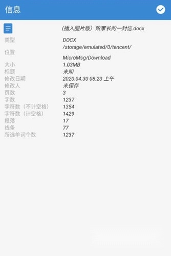 3、选择【信息】功能,就可以查看到统计字数。
