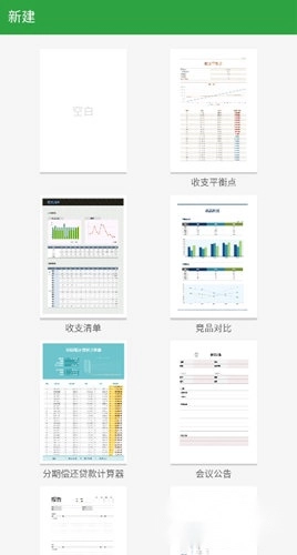 新建电子表格,并提供财务、课程表等模板