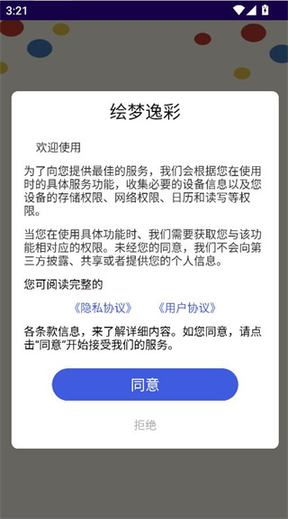 大家打开应用后,会看到温馨提示,阅读并同意即可。