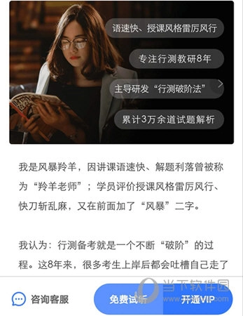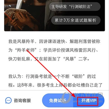 1、首先要选定一位具体的老师,接着在该老师的课程介绍页面里,找到并选择下方的开通VIP功能。