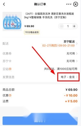 2、接下来,我们在屏幕上的“发票信息”一栏中,点击其右侧的文字。