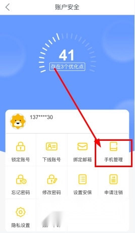 2、进入“账户安全”界面后,在功能列表里点击选择“管理”功能即可。