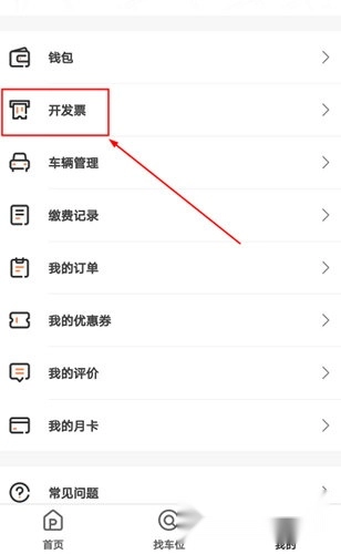 1、在美行停车的“我的”个人信息设置界面中,能找到“开发票”功能,点击该功能即可进入相关页面。