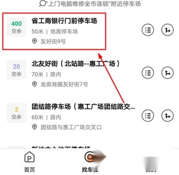 2、接着就能展示出当前位置周边的停车场以及其他特定的停车场了。