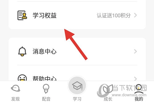 1、首先打开最美课本校园版,进入软件后再通过底部菜单栏我的选项进入个人中心,在当前页面找到学习权益;
