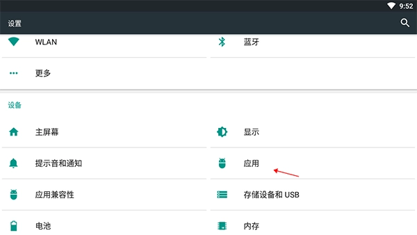 2、点击“设置”列表中“管理应用程序”