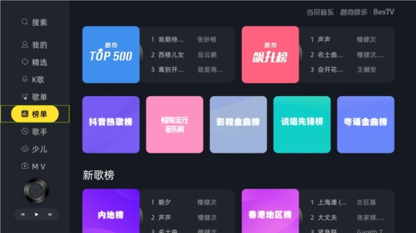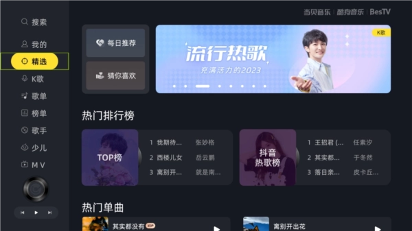 当贝酷狗音乐手机版是由酷狗音乐联合当贝开发,专为大屏而生的音乐播放软件,为广大用户带来完全免费的听歌服务,依托酷狗的4000万+正版歌曲内容库,最专业的音频解码核心技术,搭配其强大的音乐搜索和高速功能,能够让用户随时享受完美的音乐体验。你想听的,这里都有,你想听的,它统统都可以满足到你,并且所有的音质都是无损音质,让你可以享受到音乐带来的快感。此外,当贝酷狗音乐为了提升用户体验,特地优化了播放器版本,最值得一提的便是拥有高清全屏自动匹配功能以及多种炫酷沉浸式歌词屏保类型,还可以借助手机端将歌曲MV快速投放到TV端,让你尽情的开麦唱K,让客厅充满音乐。如果你想在家里电视或者大屏设备上使用酷狗音乐,那么这款当贝酷狗音乐是你的不二之选。