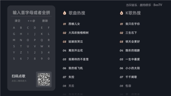 想要在当贝酷狗音乐中K歌,那么你可以现在主界面中选择K歌页面,然后进行点歌。