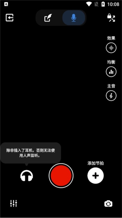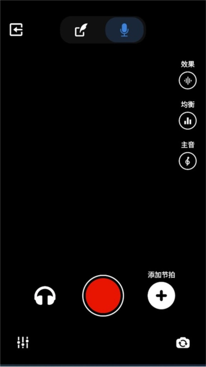 进入录音室后,您可以通过轻触屏幕顶部中心标记为“音频”和“视频”的切换按钮在音频和视频录制之间切换。