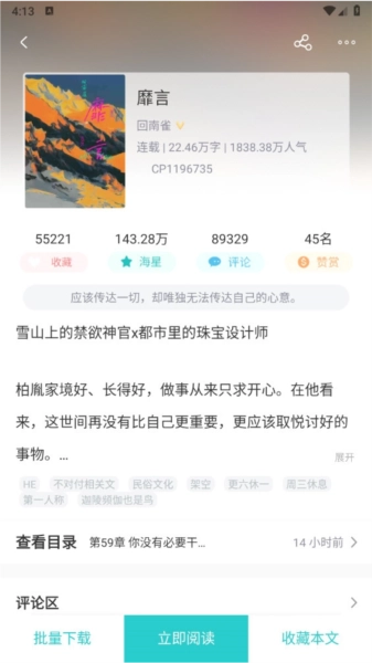 长佩阅读的旧版本更注重简洁体验,界面设计比新版更清爽简约,能让读者更专注地沉浸在小说阅读中,喜欢精简风格的用户可以尝试这个版本。长佩文学作为国内知名的女性向创作阅读平台,汇聚了大量优质的耽美小说和纯爱故事,用户粘性高,是创作者和读者交流互动的友好社区。目前,长佩文学网积累了数量众多、类型丰富的文学作品,涵盖快穿、重生、娱乐圈、动漫、校园、青春、电竞、科幻、灵异、同人、二次元、言情等多种题材,无论是甜宠、爽文、狗血还是虐心故事,都能满足不同读者的喜好。